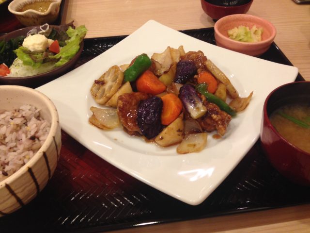 酢豚定食でご飯は雑穀米にしました。