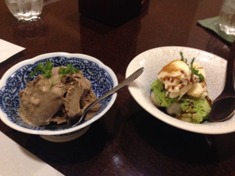 デザートは、抹茶アイスと番茶アイス。番茶アイス好き。