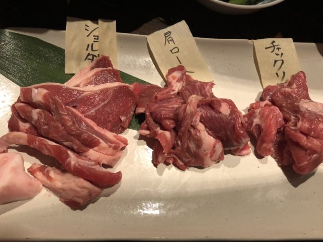 ラム肉の3種セットを注文。焼き野菜は別注文です。