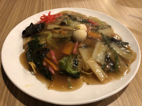 今日から導入したという食券機で、晩酌セット、あんかけ焼きそば、半チャーハン。食券機から食べたいものが探せなかったのでお店の方に食べたいのを伝えて食券機のボタン頼みましたのよ。 申し訳無いです。