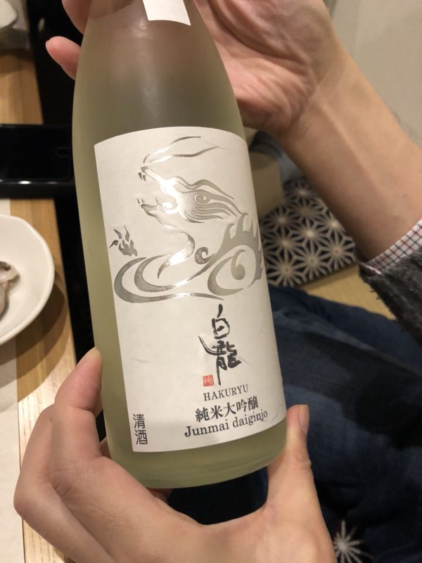 同級生が持ってきてくれた日本酒。白龍はキリッとして飲みやすく美味しかった。