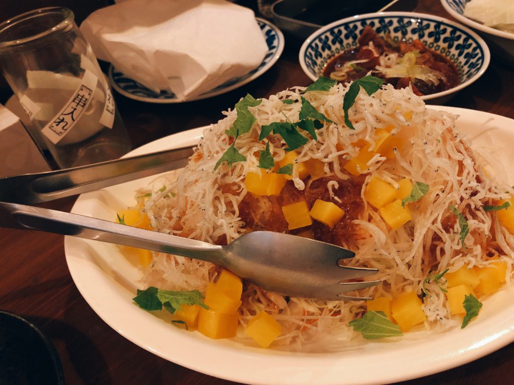 カウンター上のお皿が片付けられないほど次々とお客さんが入ってくる。飲んだ後の締めの時間。飲み会後やアフターらしきグループ。小上がりはいっぱいでした。相変わらず混みますね。