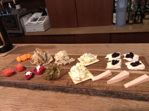 Barスペースで食事。まずはビールから。
