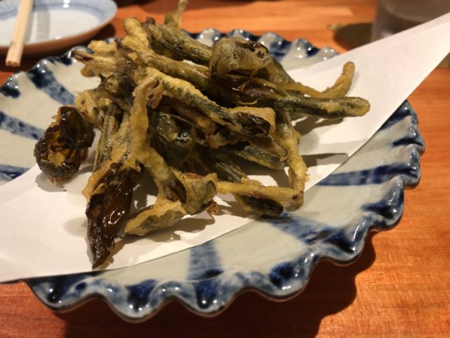 まずはギョウジャニンニクの天ぷらをいただきました。味がついているのでそのままいただきました。