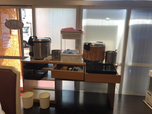 メインが運ばれてきましたので、あとは自分で。お惣菜はカウンターにおいてあり、ご飯、お味噌汁は自分で盛りテーブルまでもってきます。