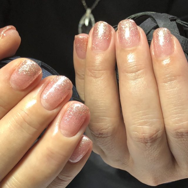 キラキラ多めです。オフィスネイルなので色は控えめに…