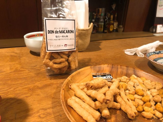 おつまみにDON de MACARONI 塩ラーメン味。コショウを入れてシャカシャカするとコショウの香りがいいです。