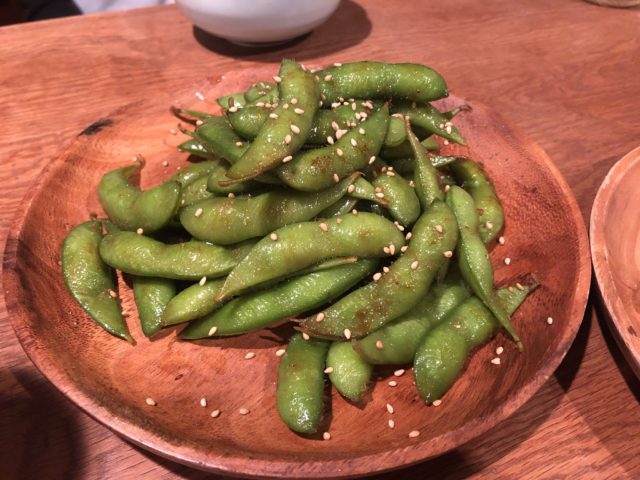 ビールのおつまみにあう。焼き枝豆。ごま油の風味もいいです。