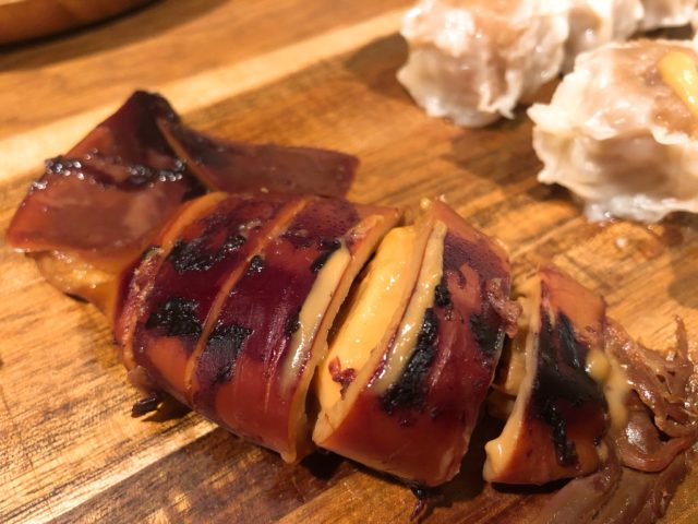 3種盛…イカメシではなくイカチーズ? 小ぶりのイカにチーズたっぷりと。普通に美味しいんですが、感想を聞かれると…イカメシの味付けがしっかりしていて、イカもとても柔らかく煮ているので、せっかくのチーズの味や食感が感じられませんでした。イカが柔らかい分、普通に6Pチーズくらいの硬さで、味付けを塩分控えめにしていただけたら私の好みかも。私の味覚が変なのか? こちらはお知り合いの試作品なんですって。感想を聞きたいからなんだそうだ。知り合いが多いこの夫婦とここで食事をするとこういう事があるから面白い。