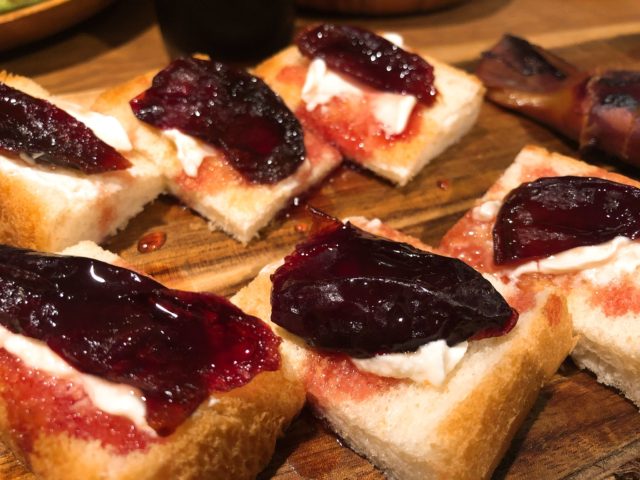 3種盛…プルーンとチーズのカナッペ。プルーンソースもかかっています。