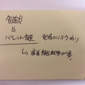 先生は説明の後に机にあった付箋紙に、こんな紙でもいい?と聞き、説明しながら要点をメモしてくれました。ネットで調べるといろいろ出てくるよと。今時の説明あり。だから要点のみのメモみたいです。