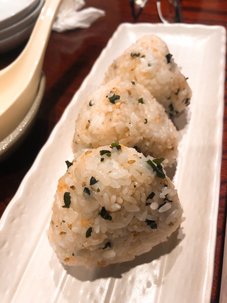 宴会メニューを見たときは〆のおにぎりとあったんですが…。塩味もちょうど良く美味しかった。あとまで、少しずついただけました。