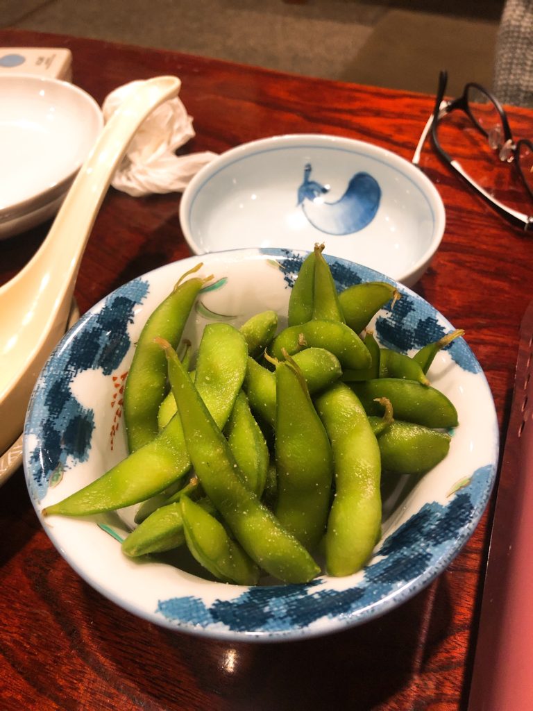 枝豆が出てきました。ちょっとした箸休めみたいな感じです。飲み放題なので飲み物いろいろ頼み、みんなでお話しタイムみたいになりました。