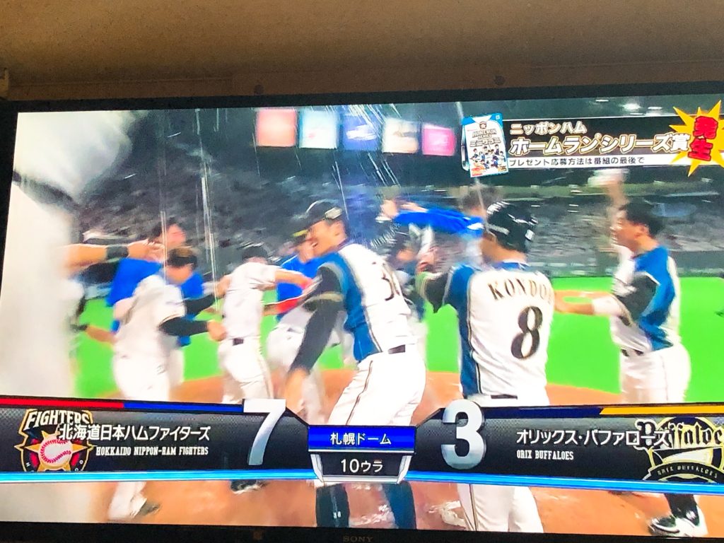…えーっ! 凄いです。中田翔の満塁ホームランでサヨナラ勝ち!