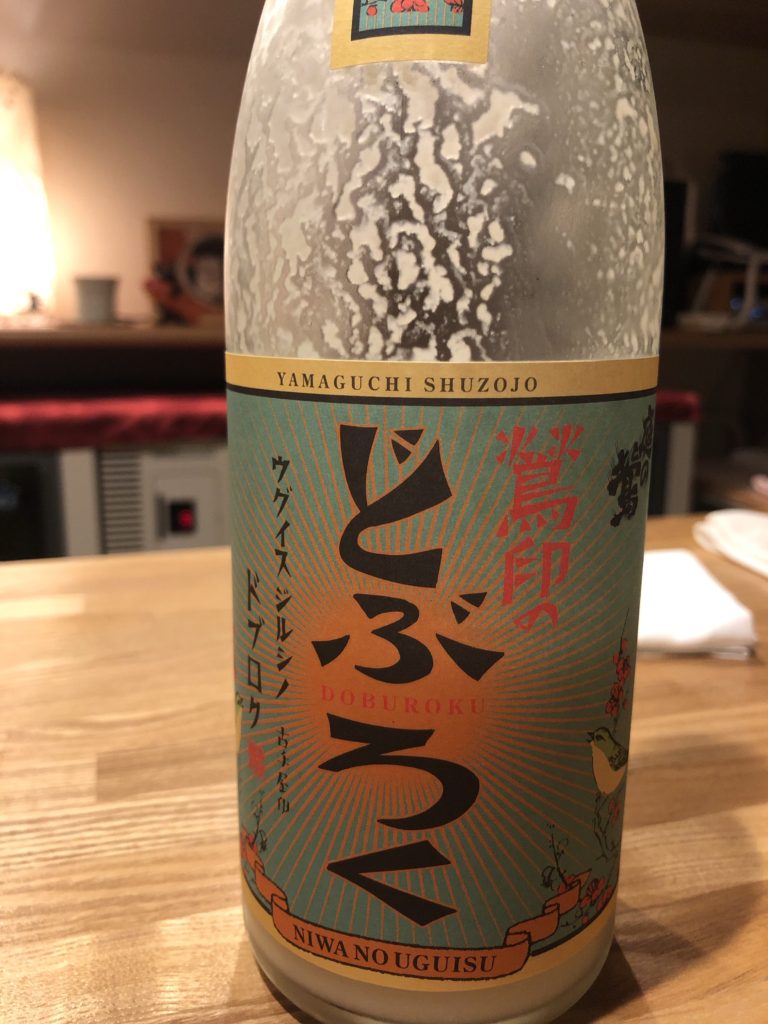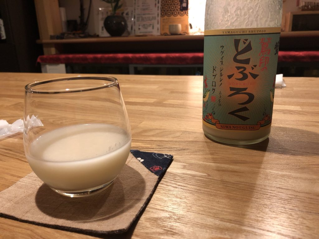 「庭のうぐいす」の事を話していたら、ママさんのおすすめで「鶯印のどぶろく」を。これもまたラベルが良い。かなり軽めなのでお酒っていうよりヨーグルトドリンクみたいです。
