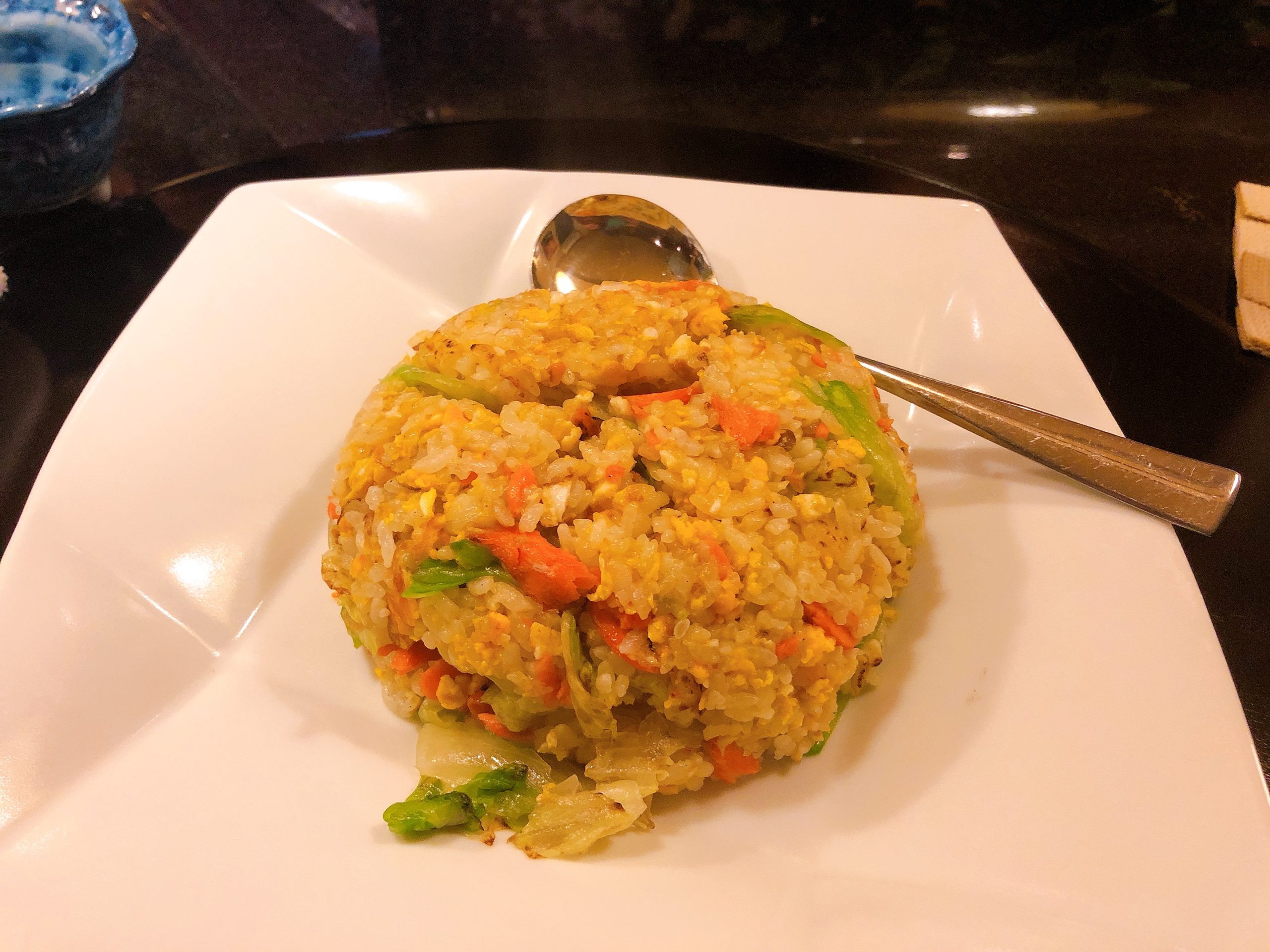 お話が落ち着きそろそろ注文してもいいかな?…って、炒飯と餃子を注文しました。本日は「焼鮭とレタスの炒飯」。焼鮭の塩味とレタスの食感がいい塩梅。