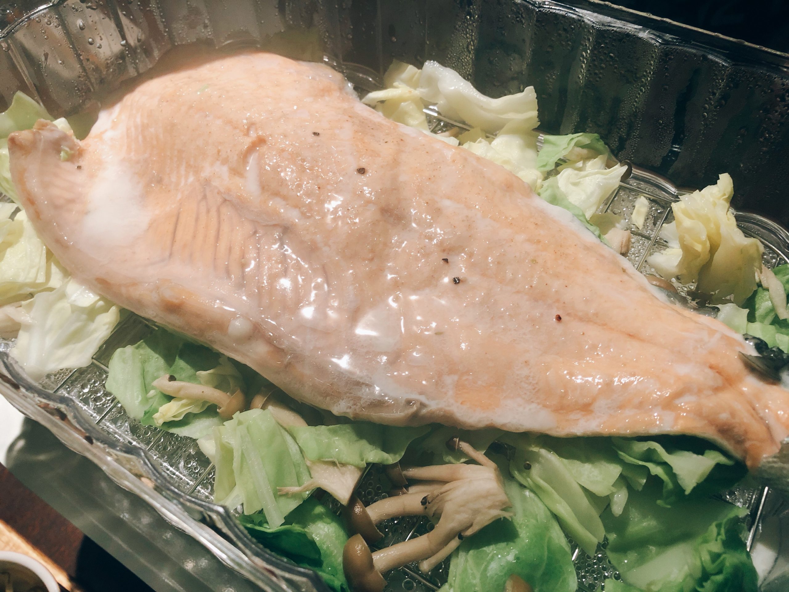 今回は餃子とマスのダブル蒸しになりました。マスは“ちゃんちゃん焼き”にしようかと思ったそうですが、そのまま蒸しに。