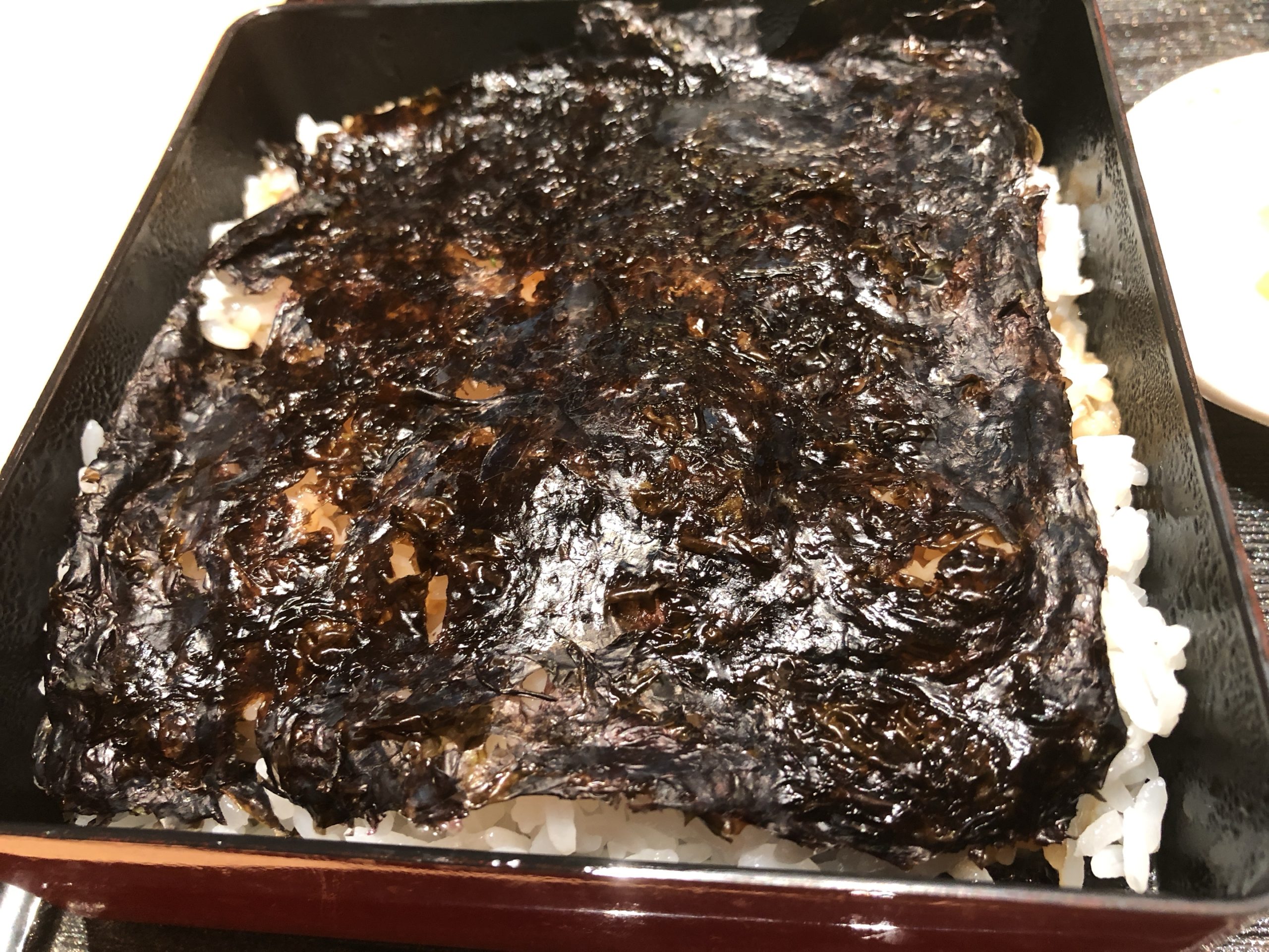 岩海苔ご飯はお弁当みたいに海苔2段になっていました。プラス150円で岩海苔弁当になるいいですね。それも岩海苔。