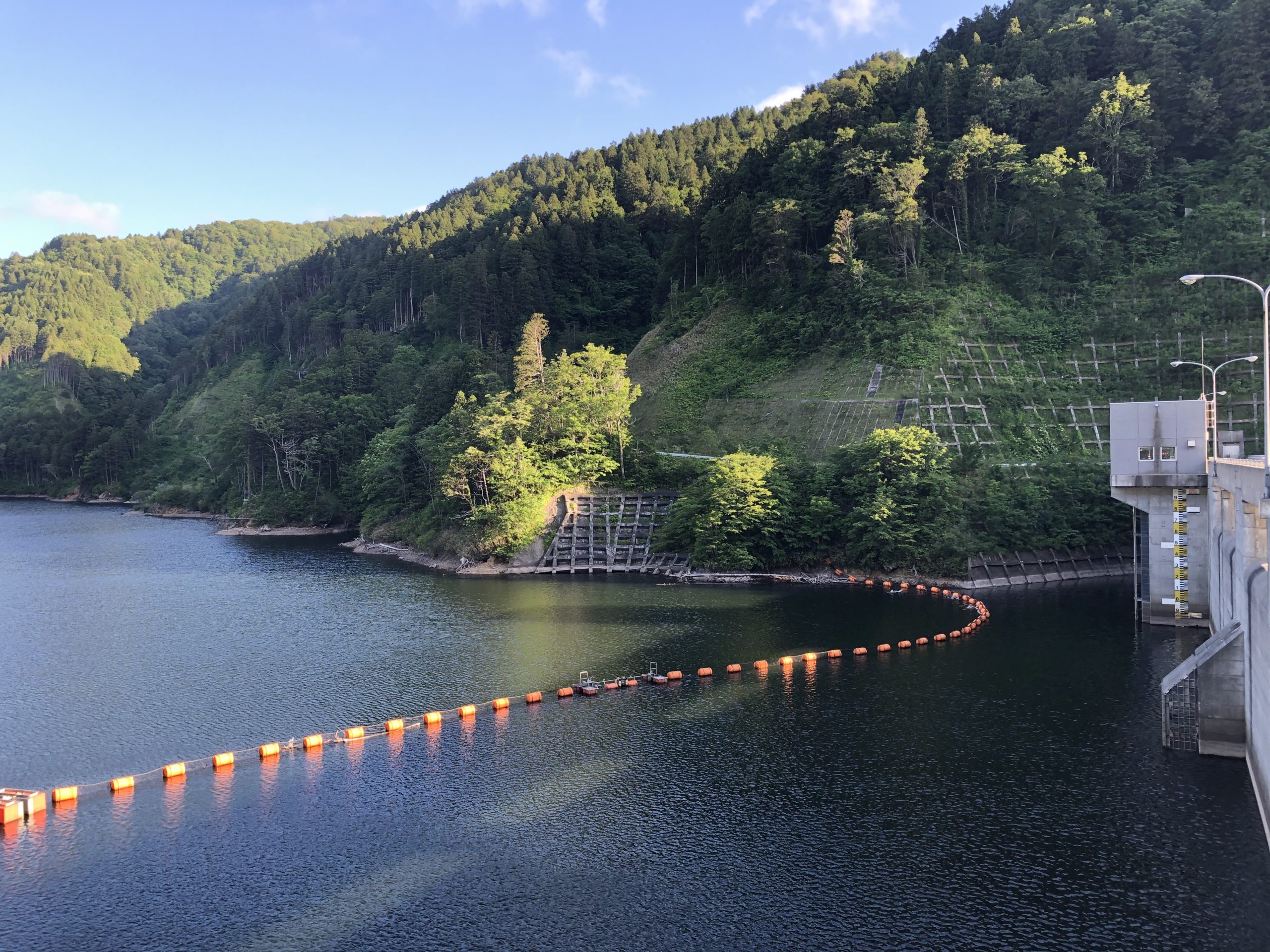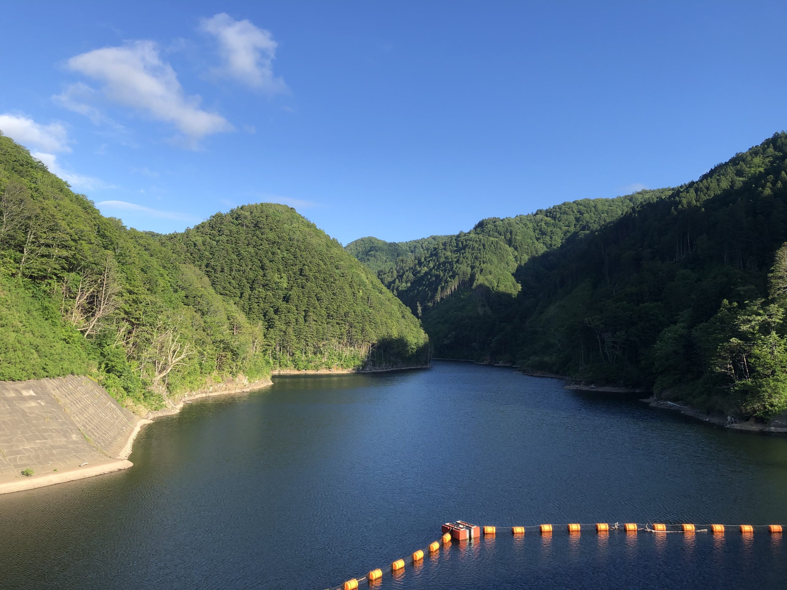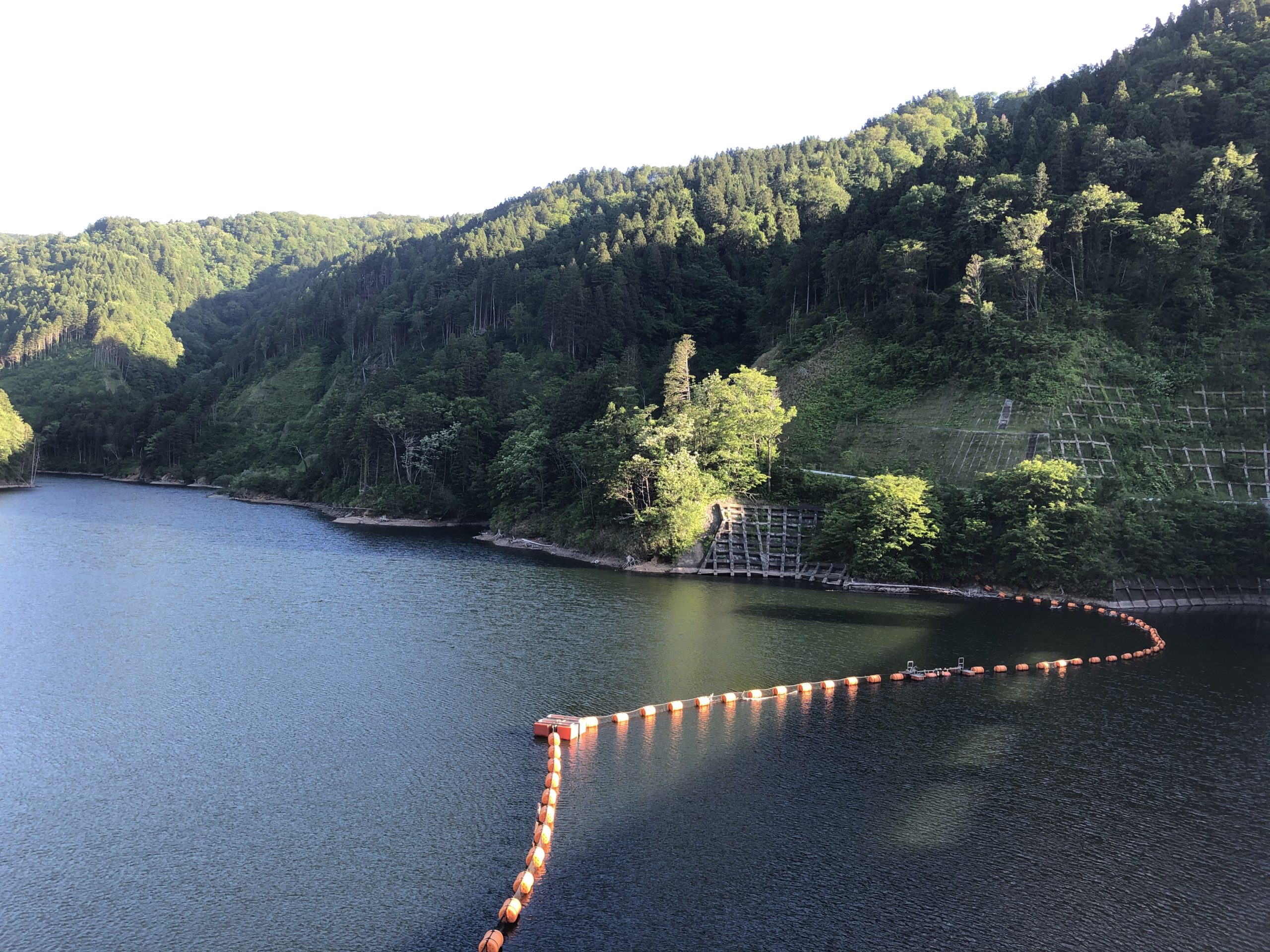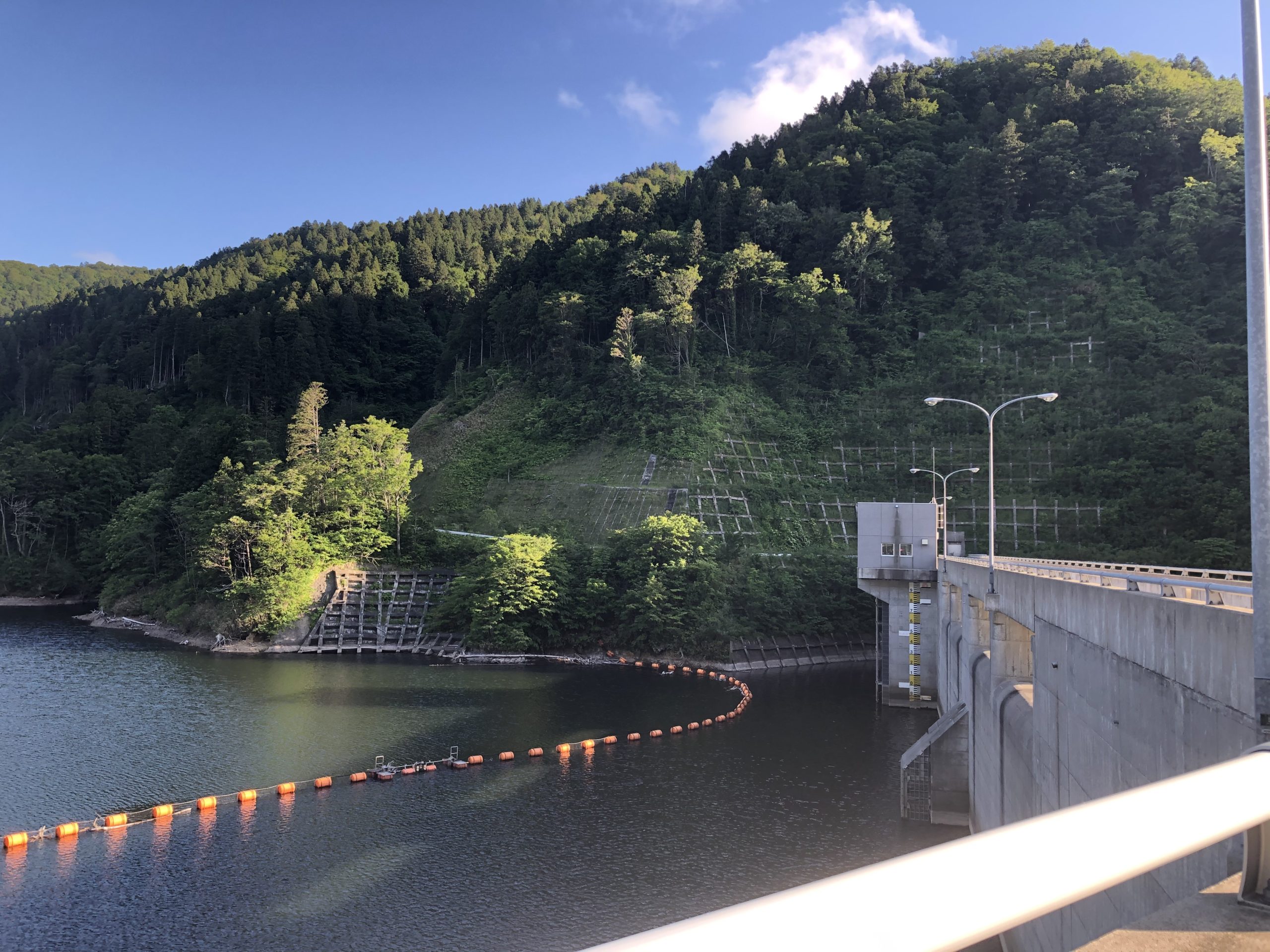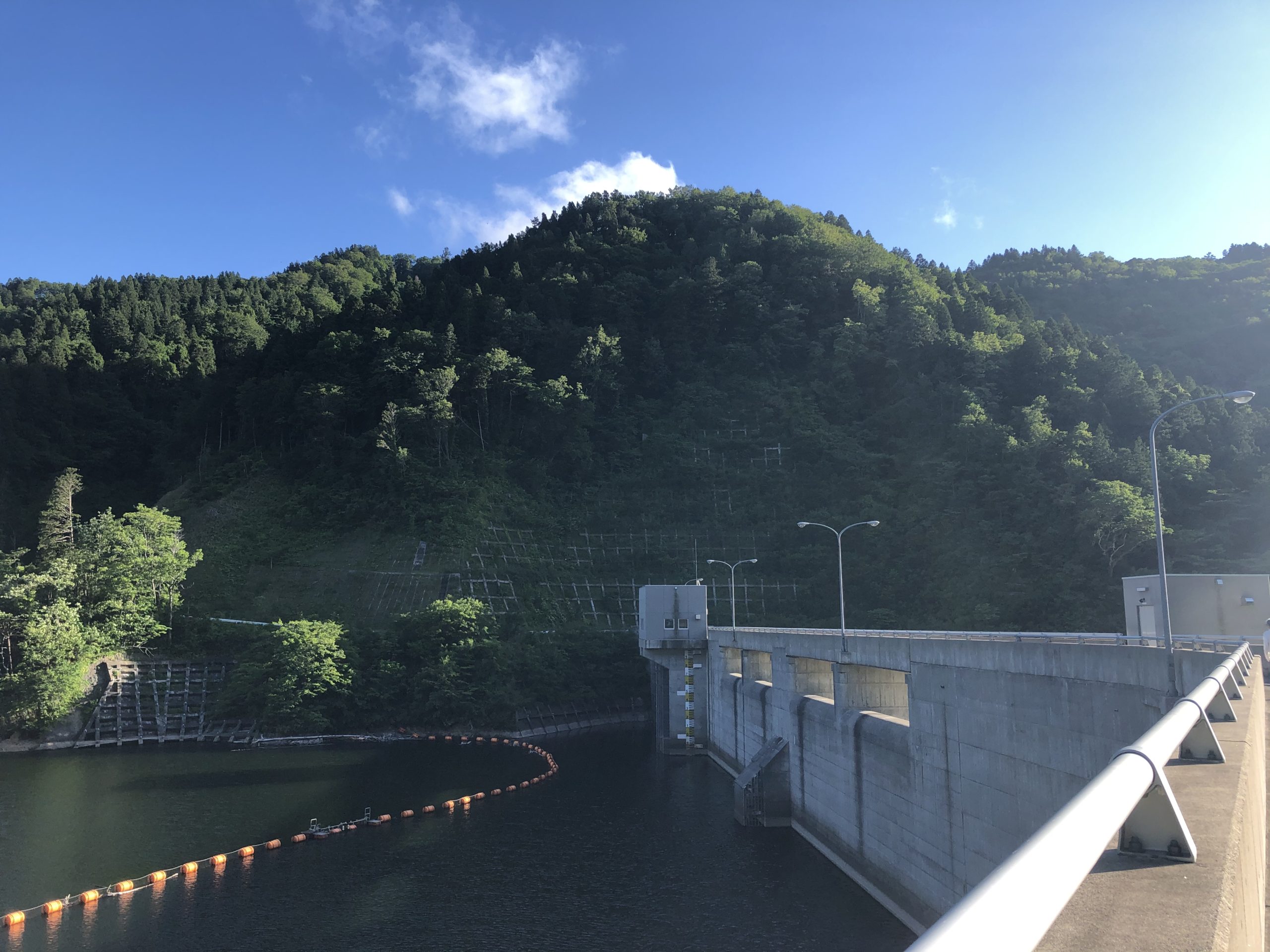 温泉の帰り道は標識にもあった上ノ国ダムに。上ノ国ダムまで5kmと標識にありました。行く途中大きな川もないし、すれ違った車は1台。
