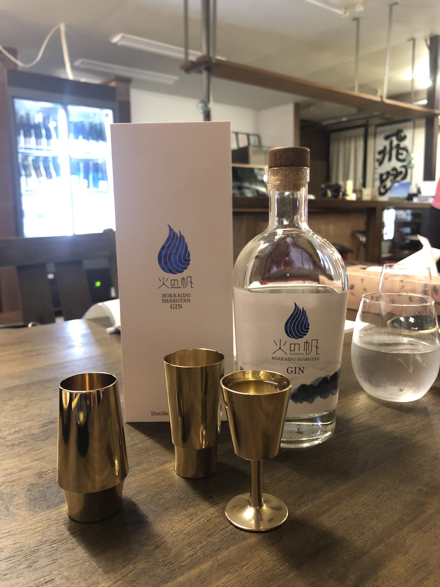 前回行った時の写真ですが積丹GIN(クラフトジン)の「火の帆」とショットグラスが印象的でした。