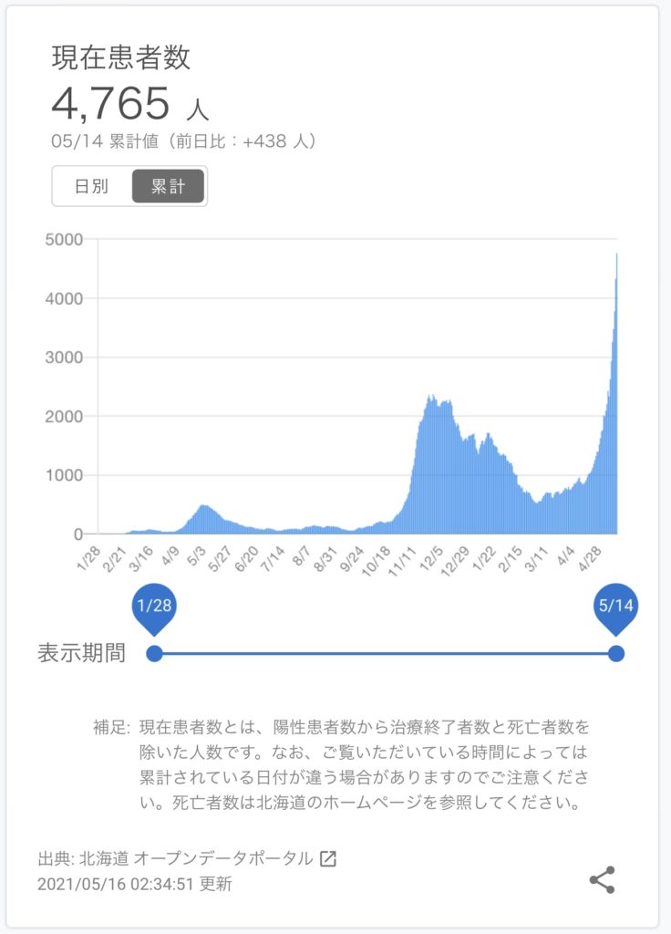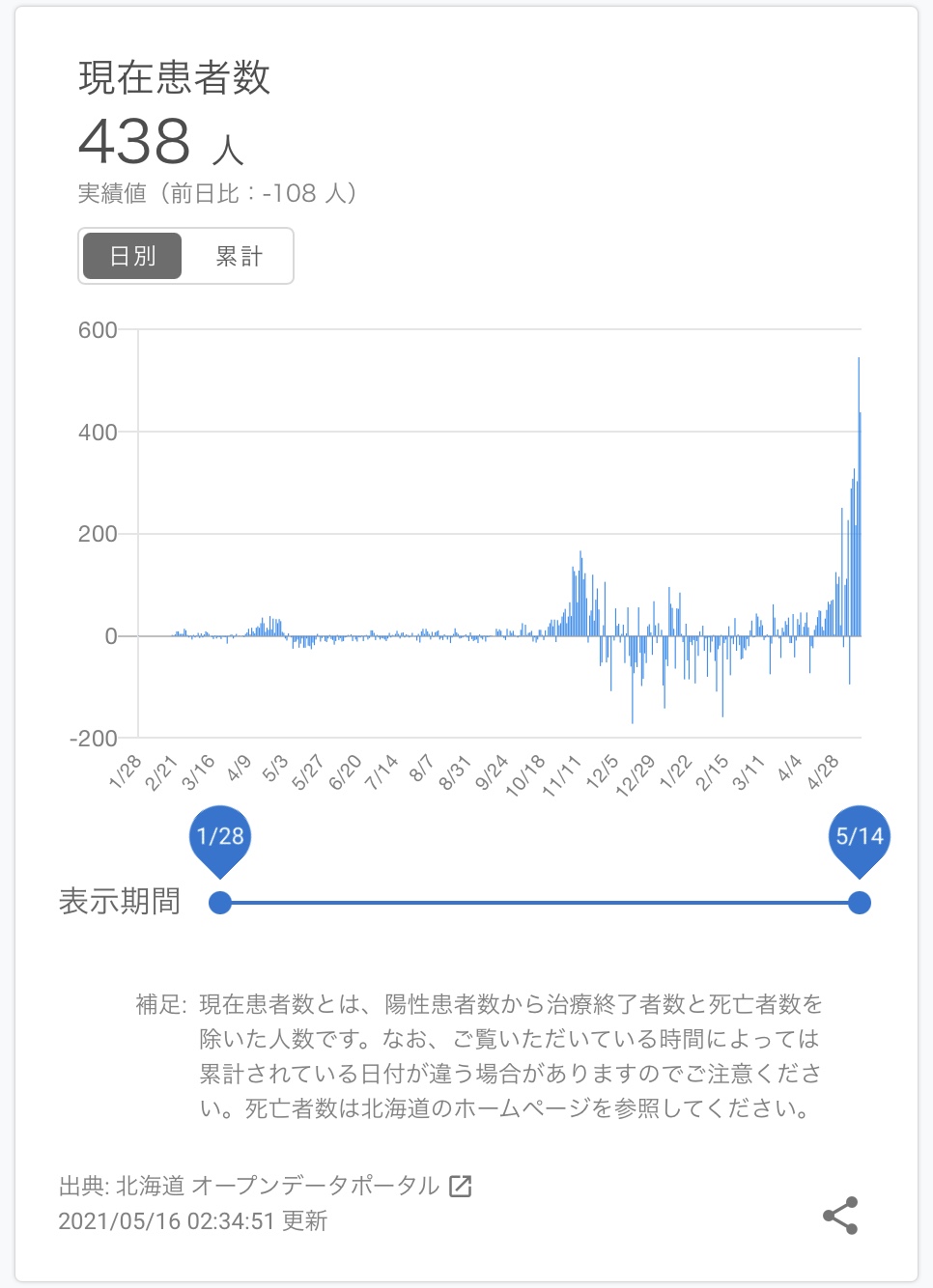 グラフで見ると道内外の往来が増え、さらにはゴールデンウィーク後は目に見るように一気に増加。