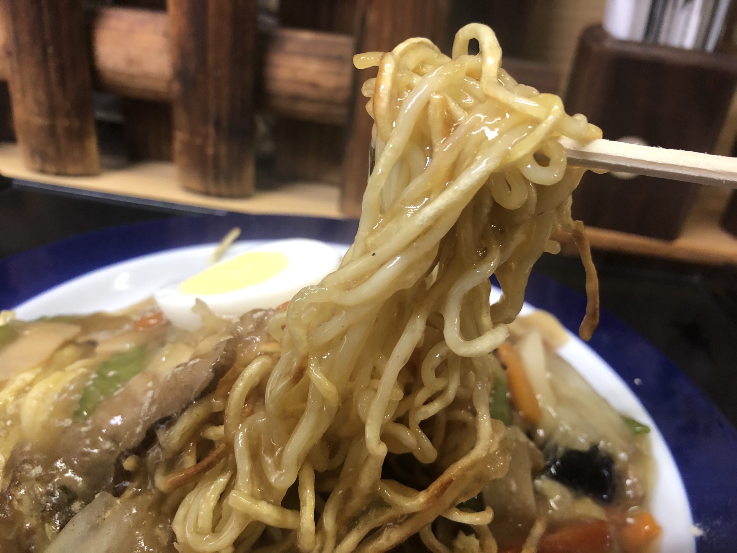焼きつけた麺はところどころ香ばしくいい感じ。あんかけのあんは塩味というか椎茸が多いのかな?椎茸の出汁が効いているのか甘く感じる。椎茸好きの私としてはこれはいい塩梅で美味しい。それに麺とあんのバランスがいいですね。あんが残ることなくキレイに食べ切れましたよ。
