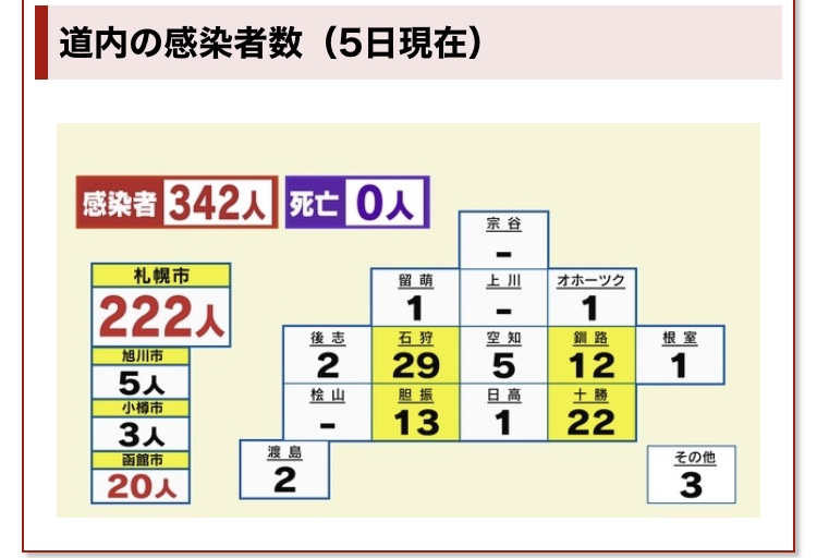 函館市内の感染者が20人。