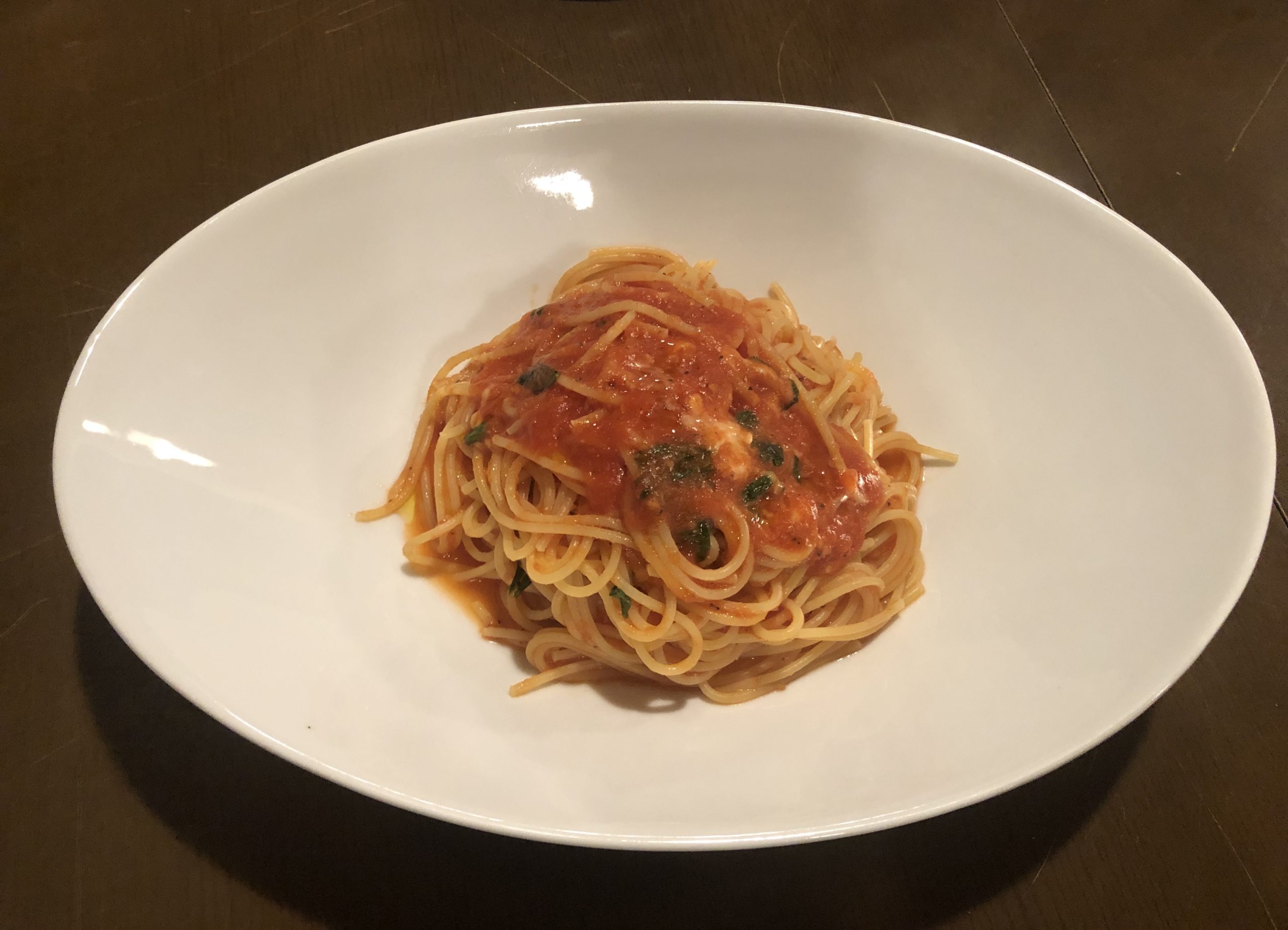 たっぷりな前菜盛り合わせを食べ終わった頃にパスタ「ポモドーロ」。