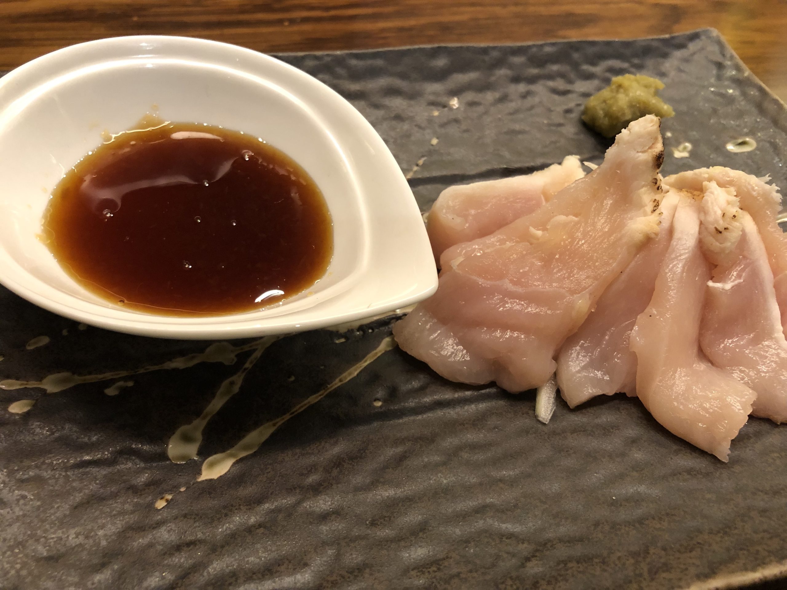 鶏むね肉のたたきを食してすかさず日本酒「炭山肉男」を注文です。合います、美味しいです。