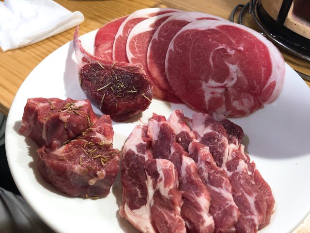 お肉は4種盛りと2種盛りを注文。ラムステーキとラムチョップは味が(ハーブ…いい香り)付いています。