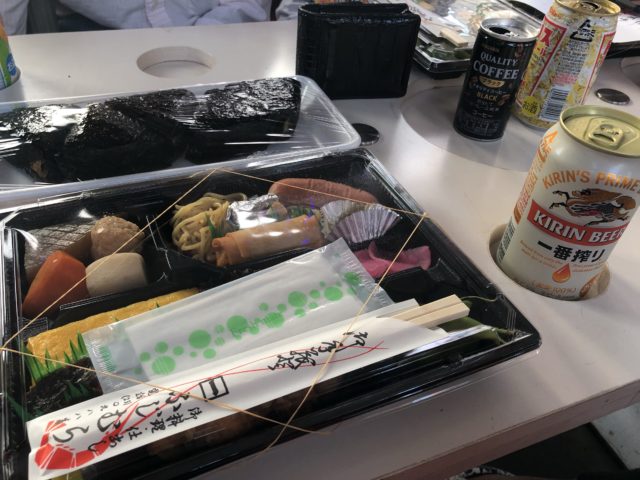 車内でお弁当をいただきました。飲み物は各自持参で。