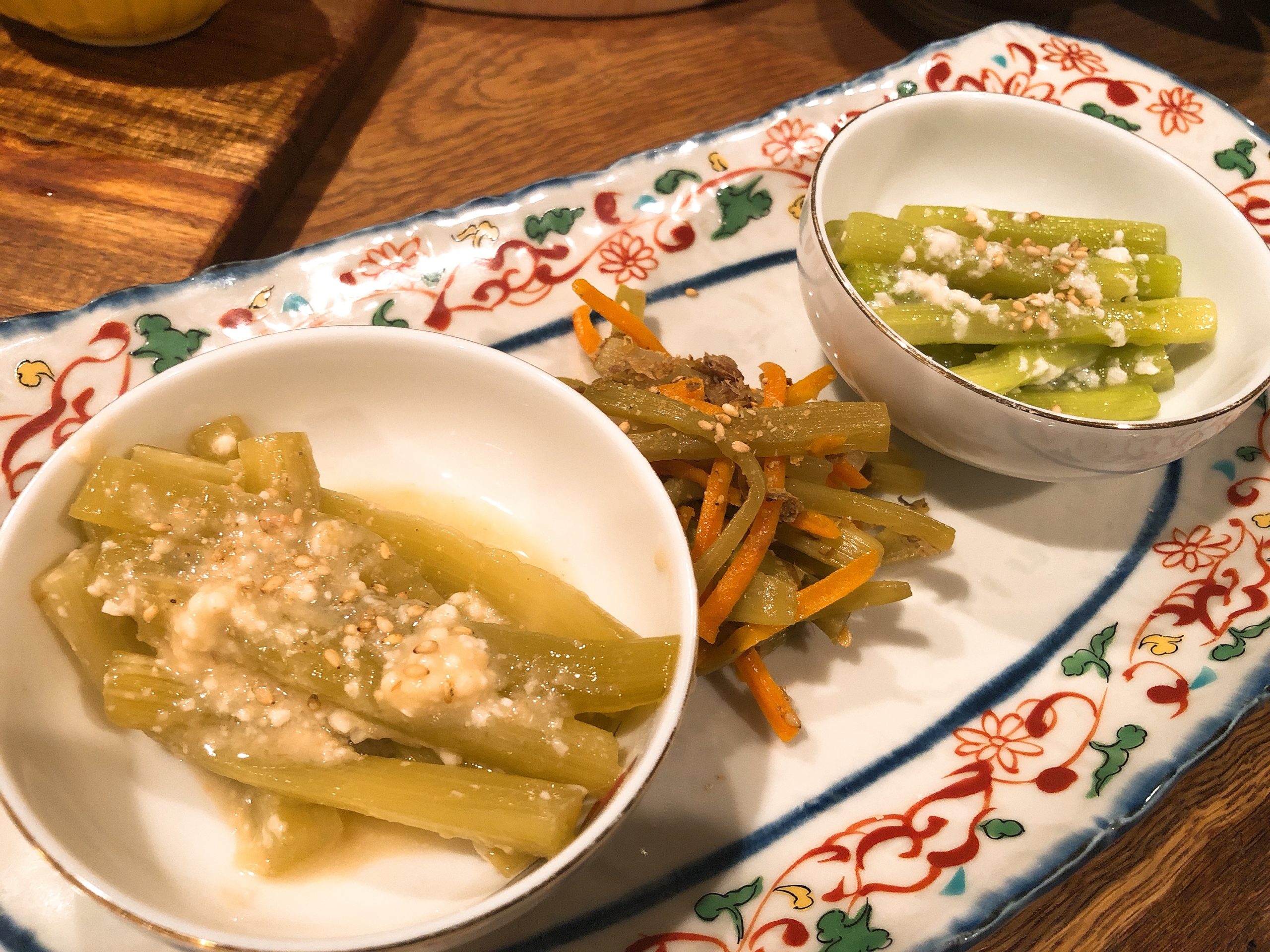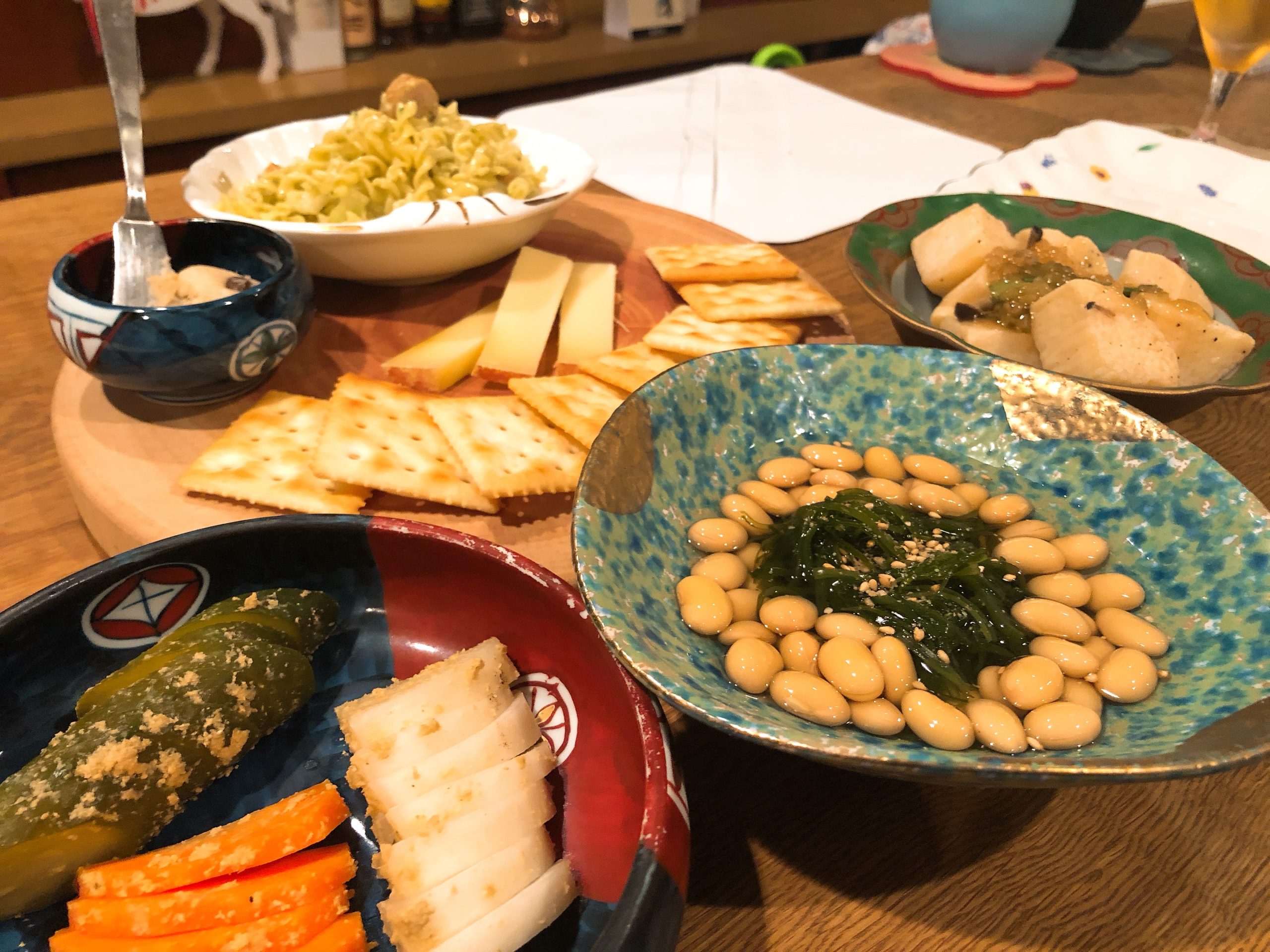 2枚爪のせいかネイルが剥がれてしまい、本日は爪屋さんは定休日ですがお直ししていただきました。併せて夜ゴハンも。前回からのお約束で本日はBRUNOのホットプレートでの夜ゴハンなのですが、前菜が…バジルのマカロニサラダやウドの3種盛りやぬか漬けベビーホタテなどなどてんこ盛り。