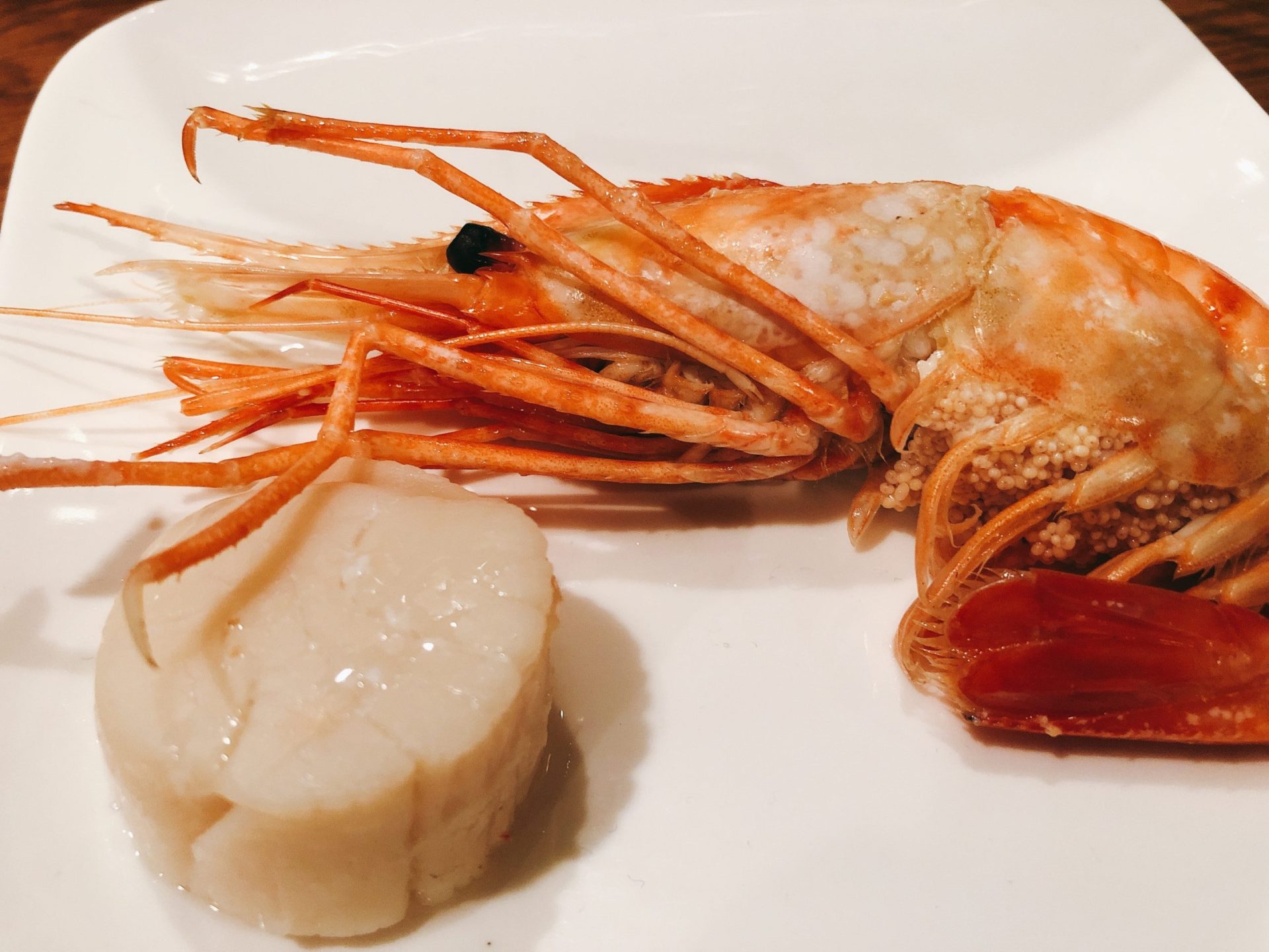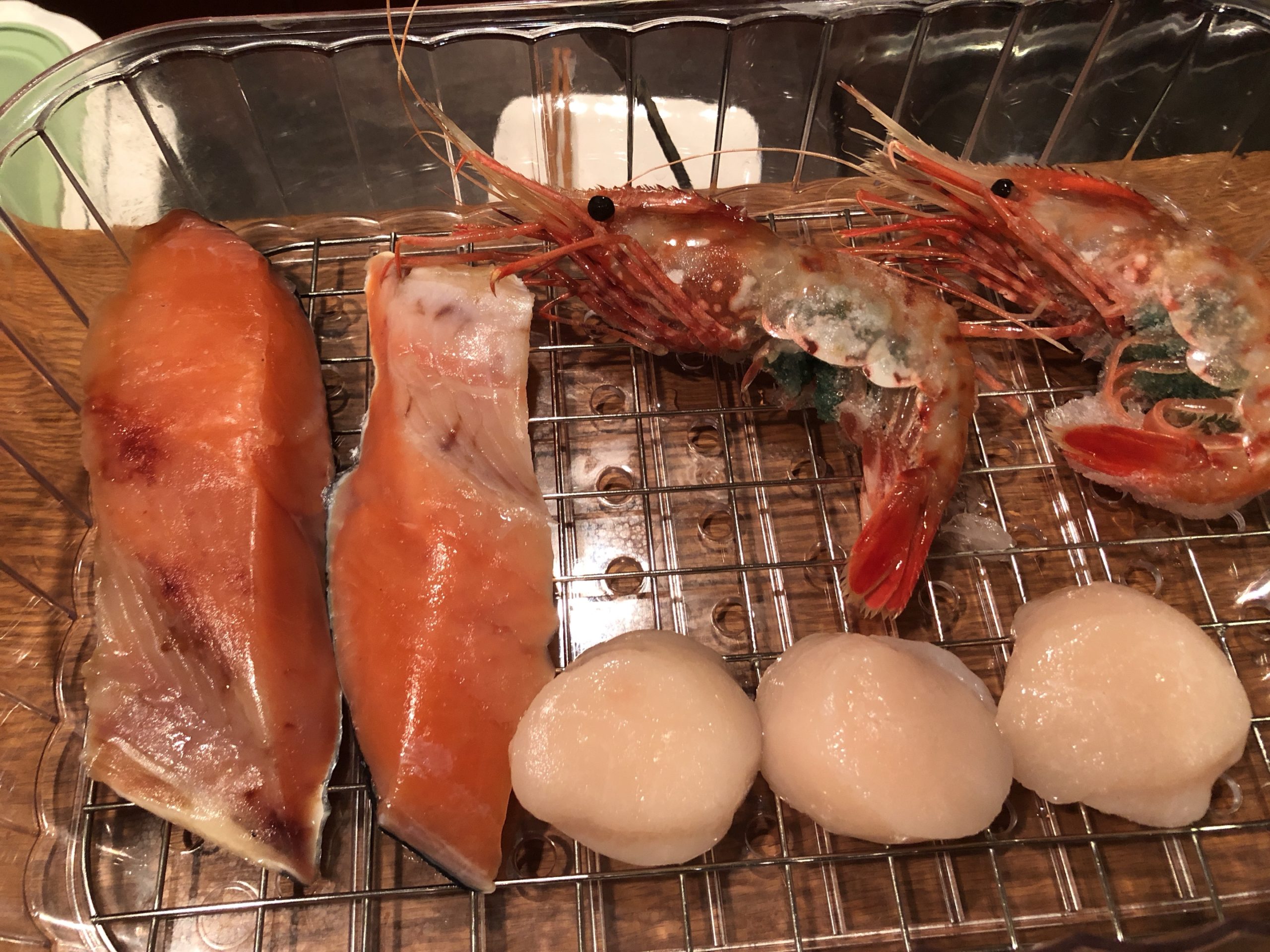 帆立もボタン海老も鮭もそのままで美味しい。塩麹漬けの豚肉も餃子は凝縮したお味。