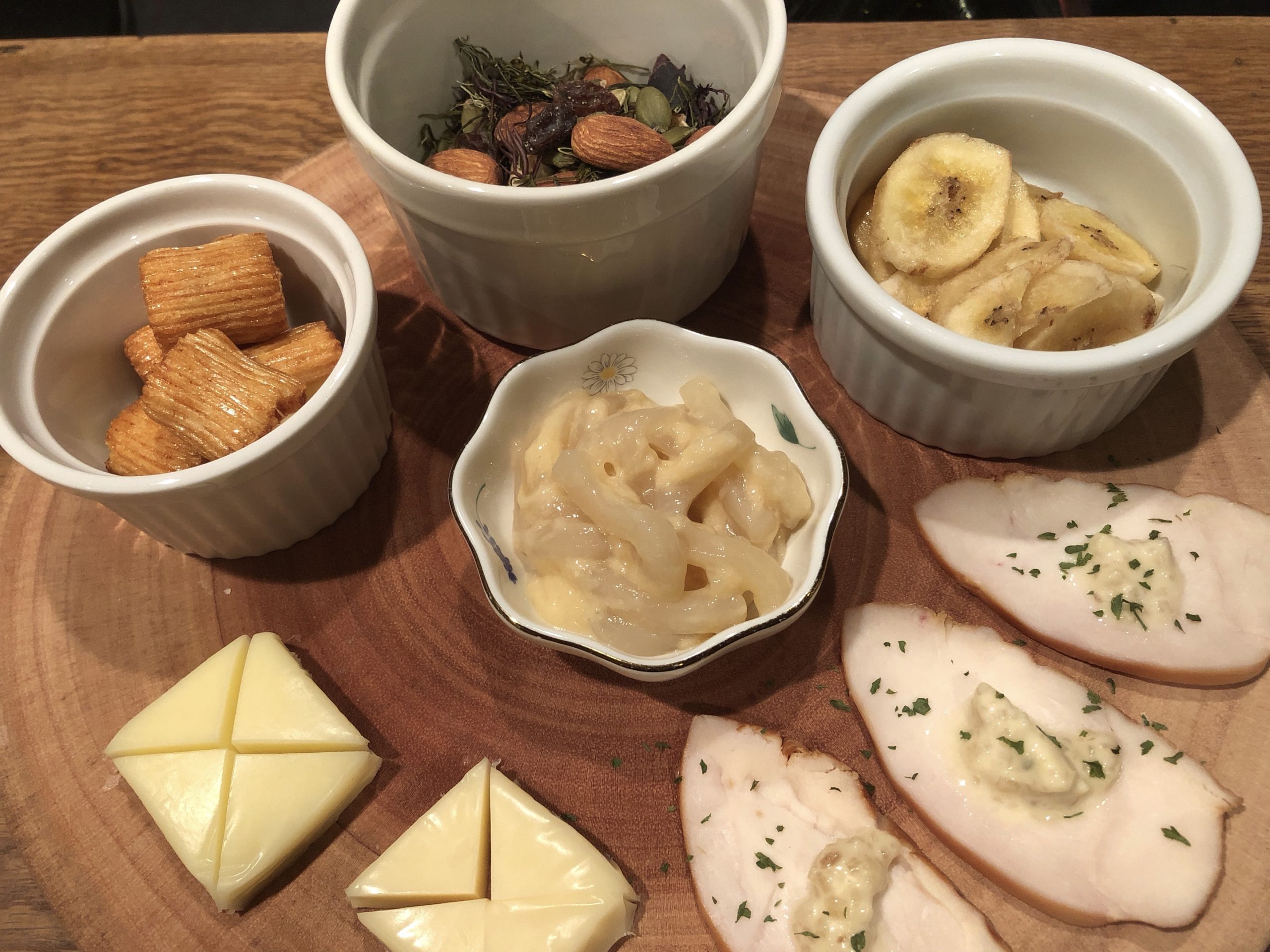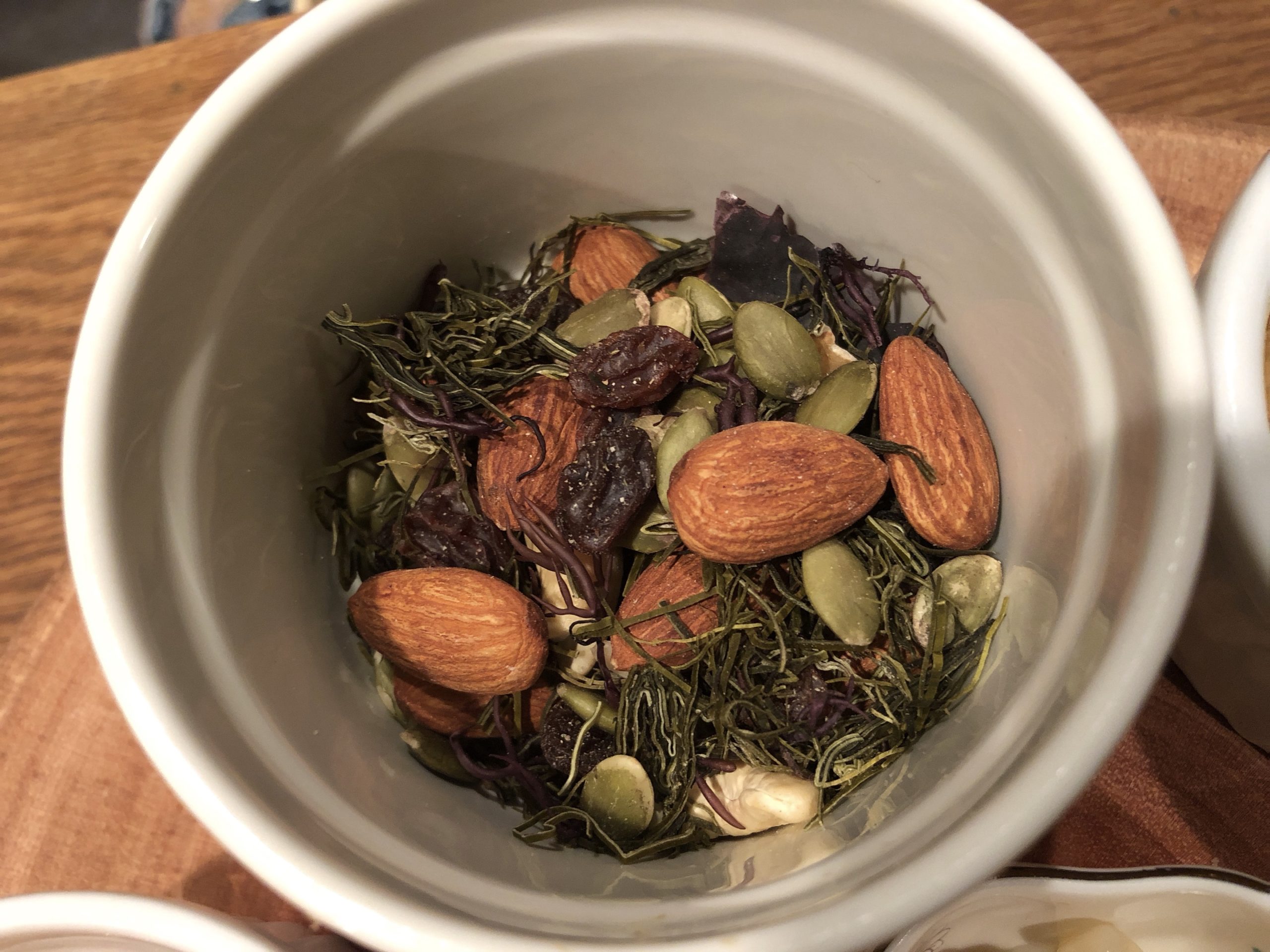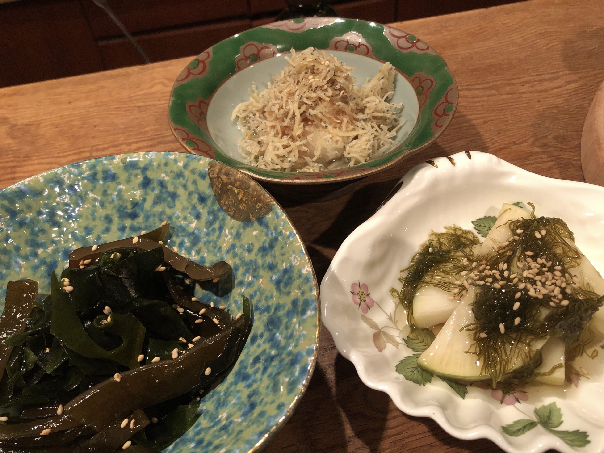 前菜1と前菜2。ヘルシーな前菜。今日は海藻たっぷり。